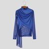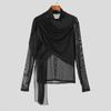 INCERUN Men Ruffled High Neck Patchwork Front Cross Fitted Tops Mesh Sheer Irregular T-shirts