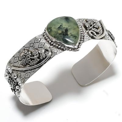925 Silver Natural Moss Moss Prehnite Engagement Artisan Unique Bangle Jewelry