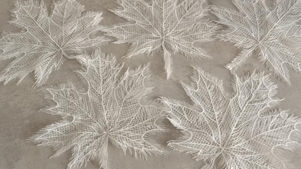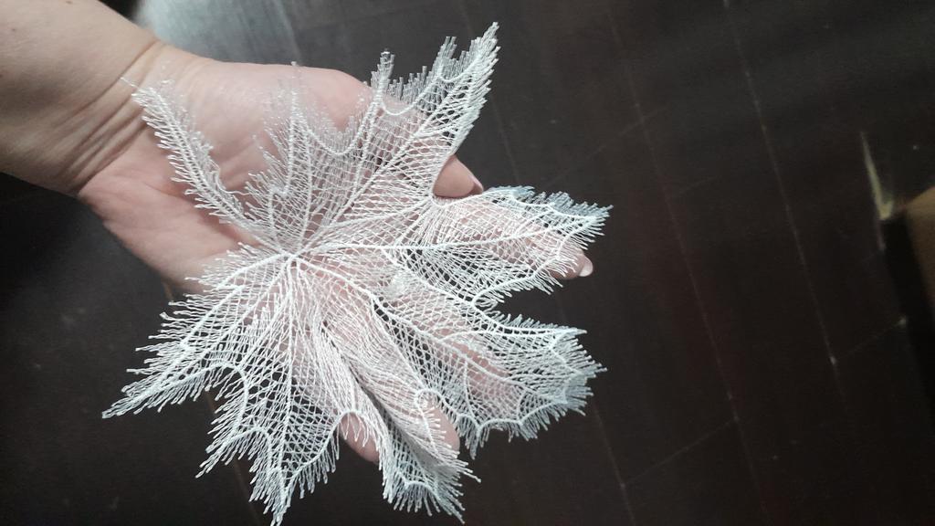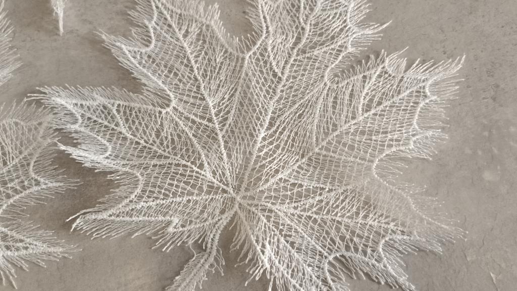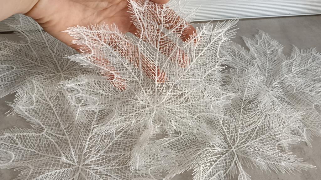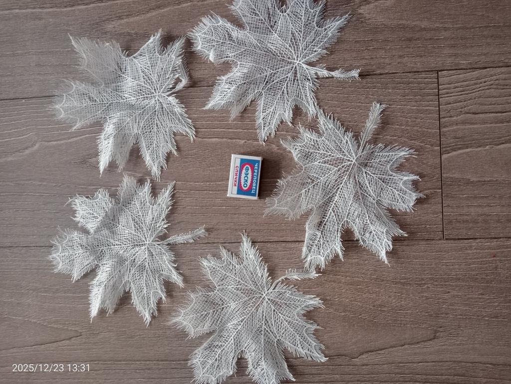 Exquisite maple leaves made of thin woven white threads in the amount of 5 pieces will be used by me to decorate the tablecloth. Recommend for purchase.