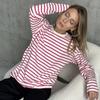 Spring Long Sleeved Striped T-shirt, Versatile European and American Casual Round Neck Pure Cotton Striped T-shirt