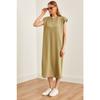Women's Navy Blue Shoulder Padded Crystal Dress Elb-19002086
