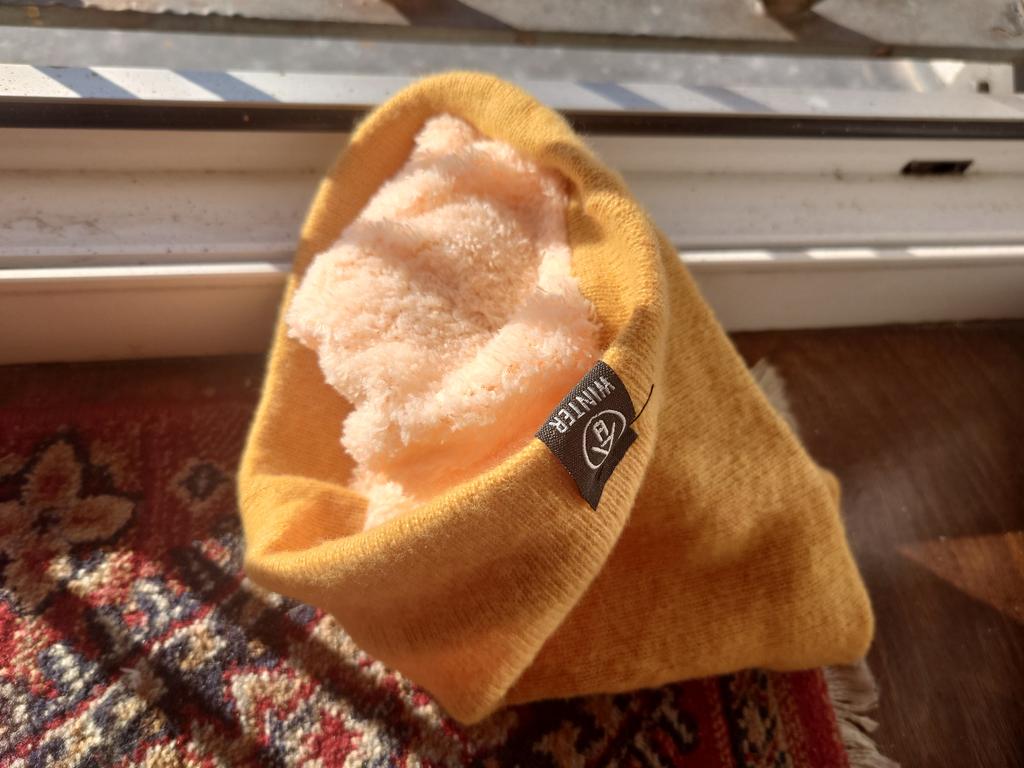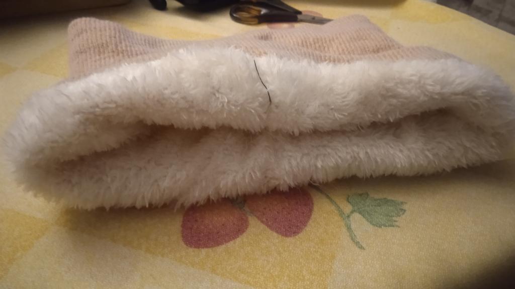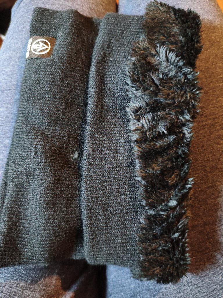 A nice thing, warm, the fur inside is soft, it wraps the neck well, doesn't hang down, so it doesn't blow through. The only thing, it will probably pill quickly, because the threads are soft