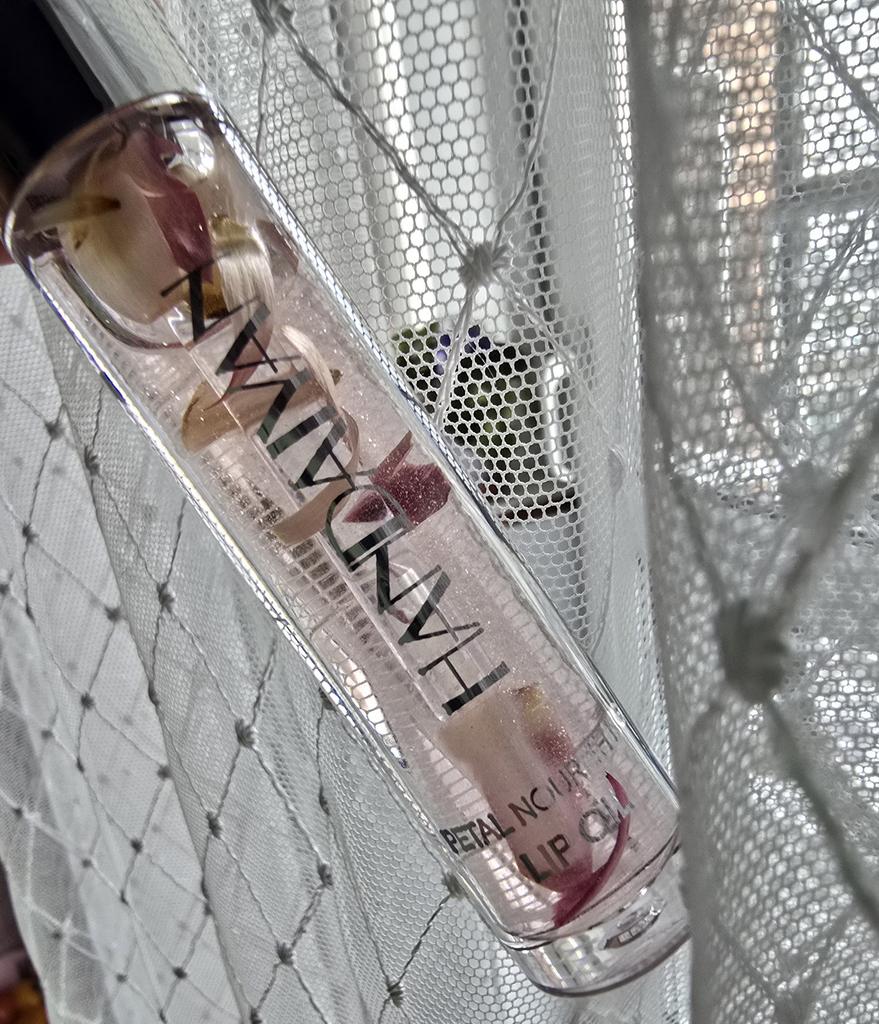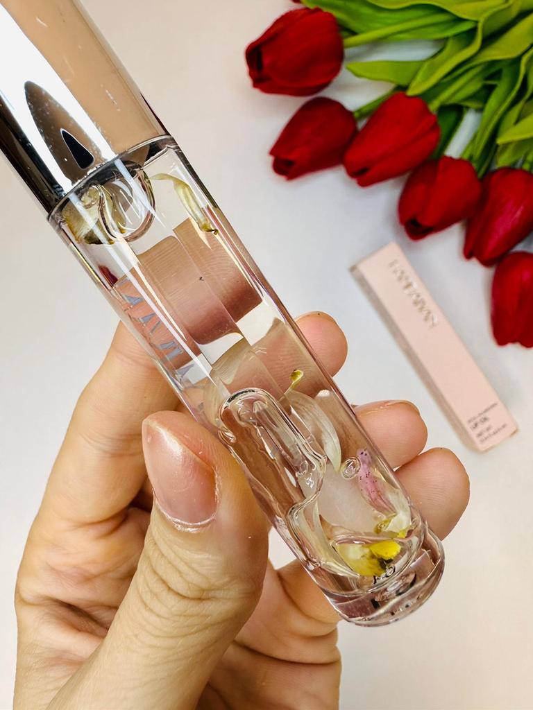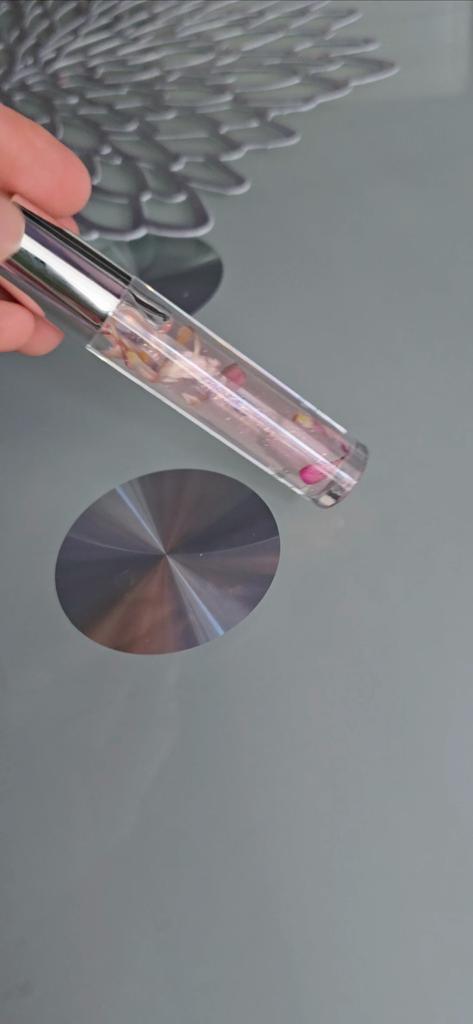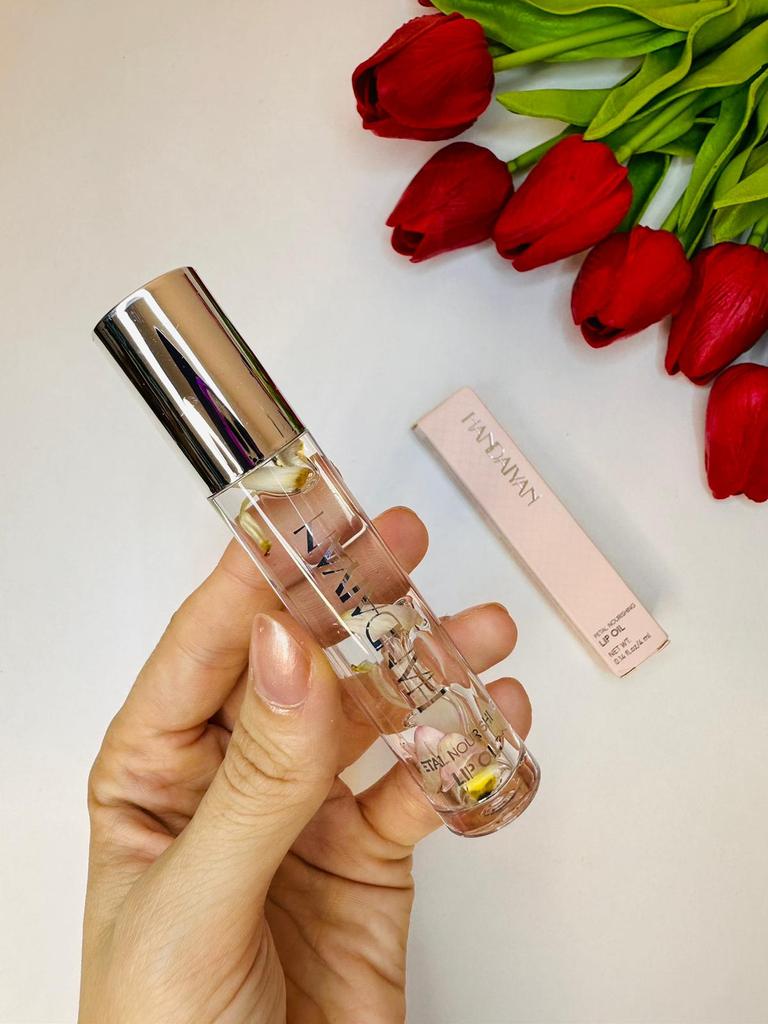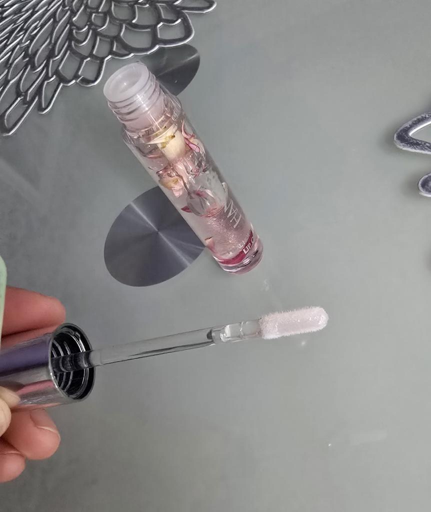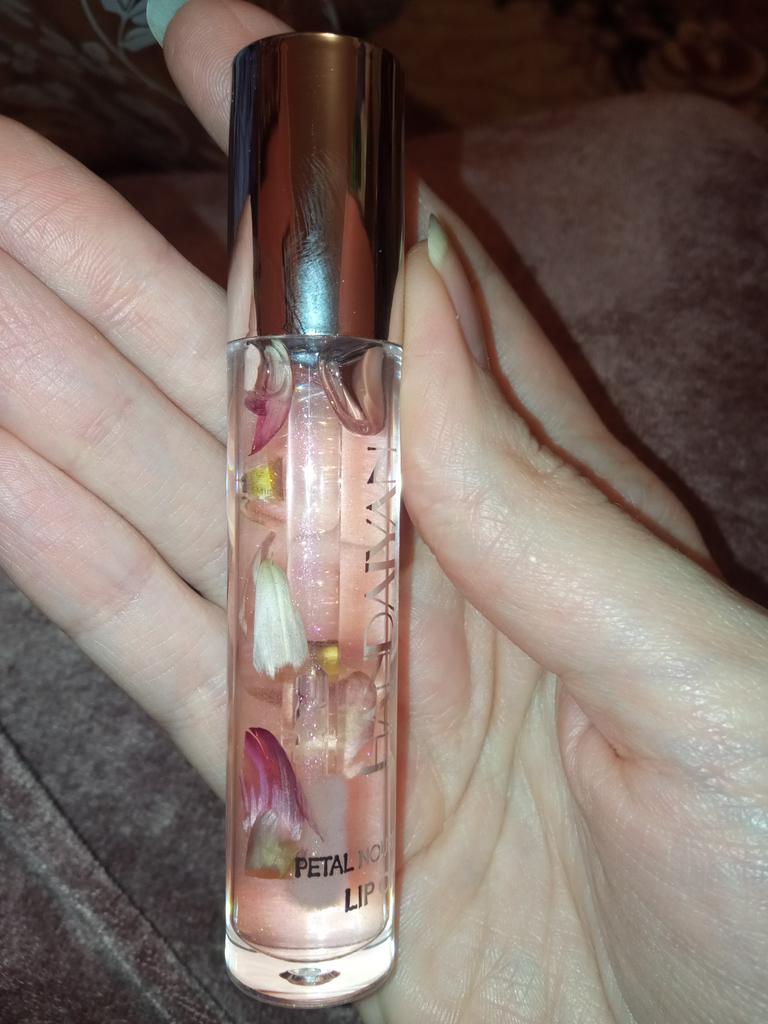 Gentle lip oil Looks very aesthetic! Inside are small flower petals. Moisturizes well. Has a light pleasant aroma. Delicate pink shade. It was packed hermetically.