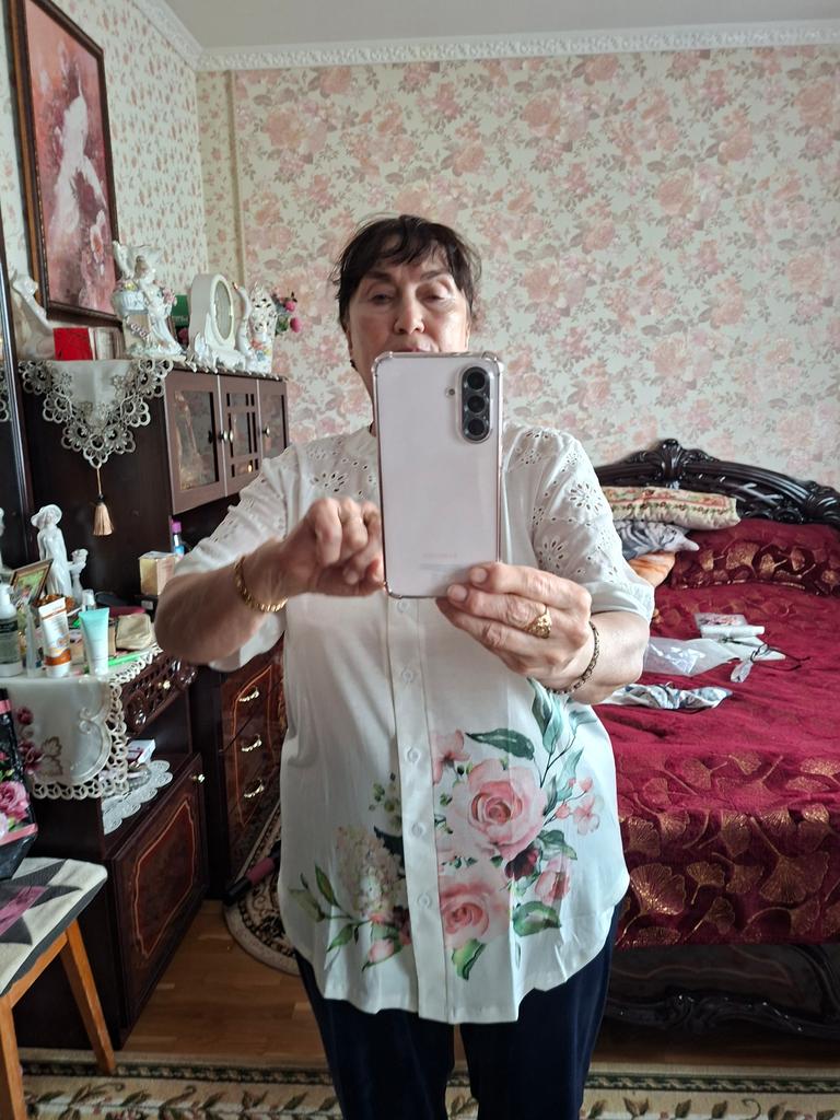 Beautiful blouse, pleasant material, size corresponds. I am satisfied, thank you.
