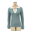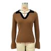 IHUASU Women's Europe and The United States Autumn and Winter Pullover Knit Sweater Flared Sleeves Lapel Jumper