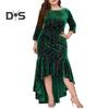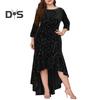 Short front and long fishtail hem design adds a touch of sophistication to this plus-size dress.