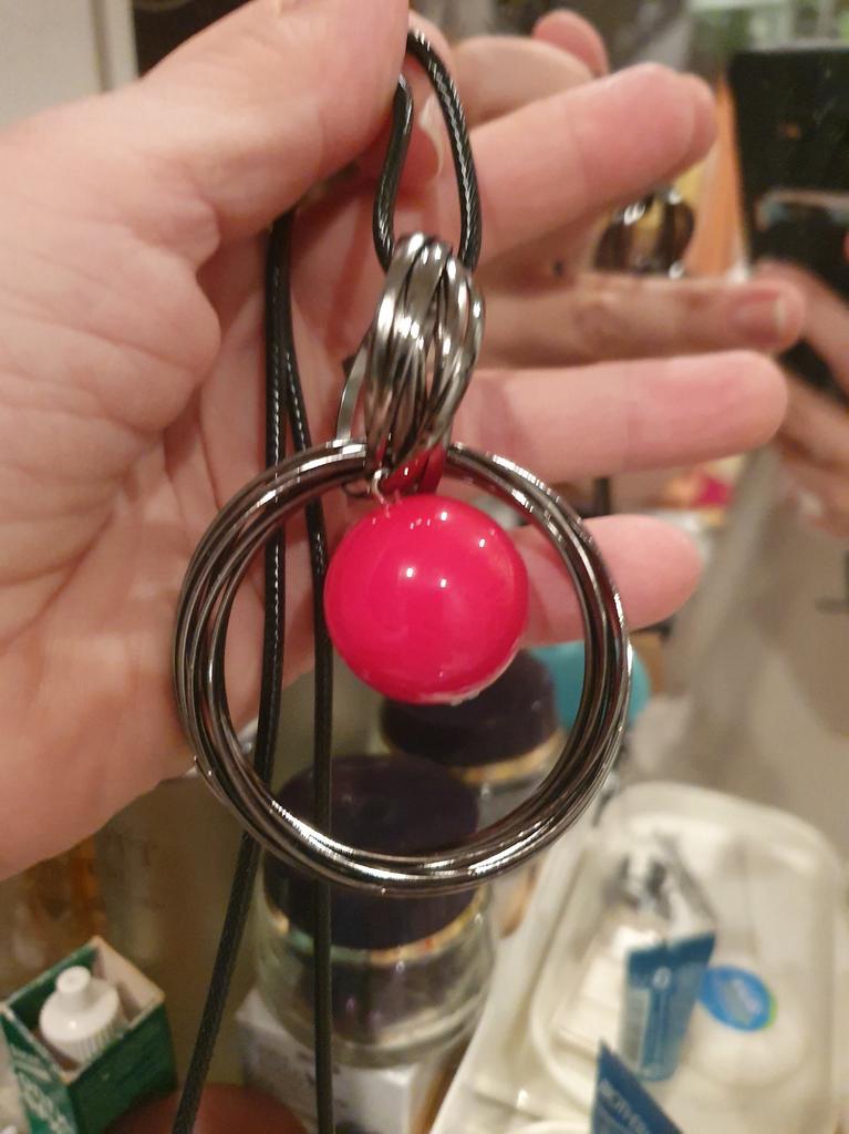 Very beautiful pendant. I didn't even expect it to be so beautiful. Much better than in the photo. The bead is very large, about 3 centimeters in diameter.