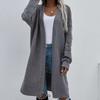 IHUASU Autumn and Winter Long Cardigan Solid Colour Women's Knitted Fashion Sweater
