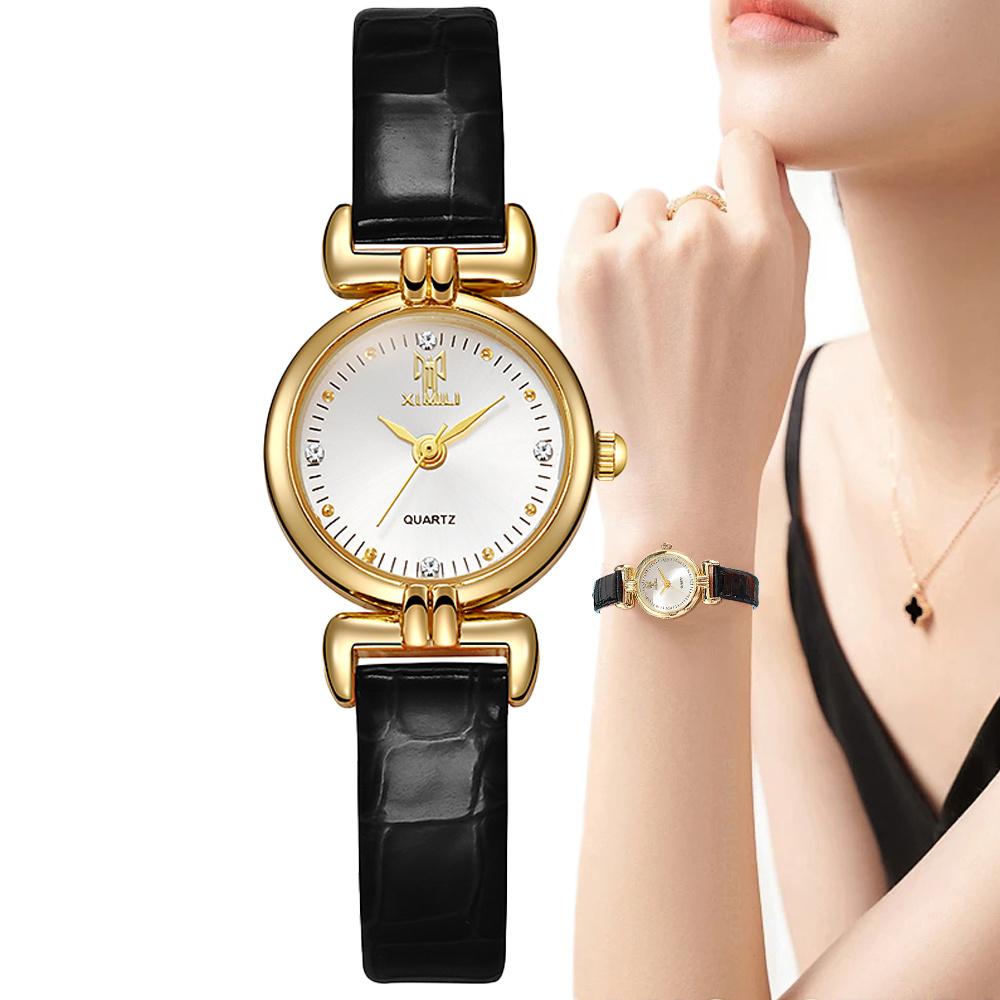 Ladies Simple Rhinestone Quartz Watch Leather Women Dress Clock Gift Wristwatch