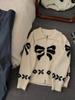 Autumn French Fashion Sweet Knitted Cardigan Women Harajuku White Design Aesthetic Print Sweater Female New Casual Elegant Chic Warm Coat
