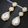 Charm White /Rose /Yellow Gold Color Drop Water Long Earrings Clear Crystal Nail Drop Earings Women Dazzling Wedding Gift Ae331