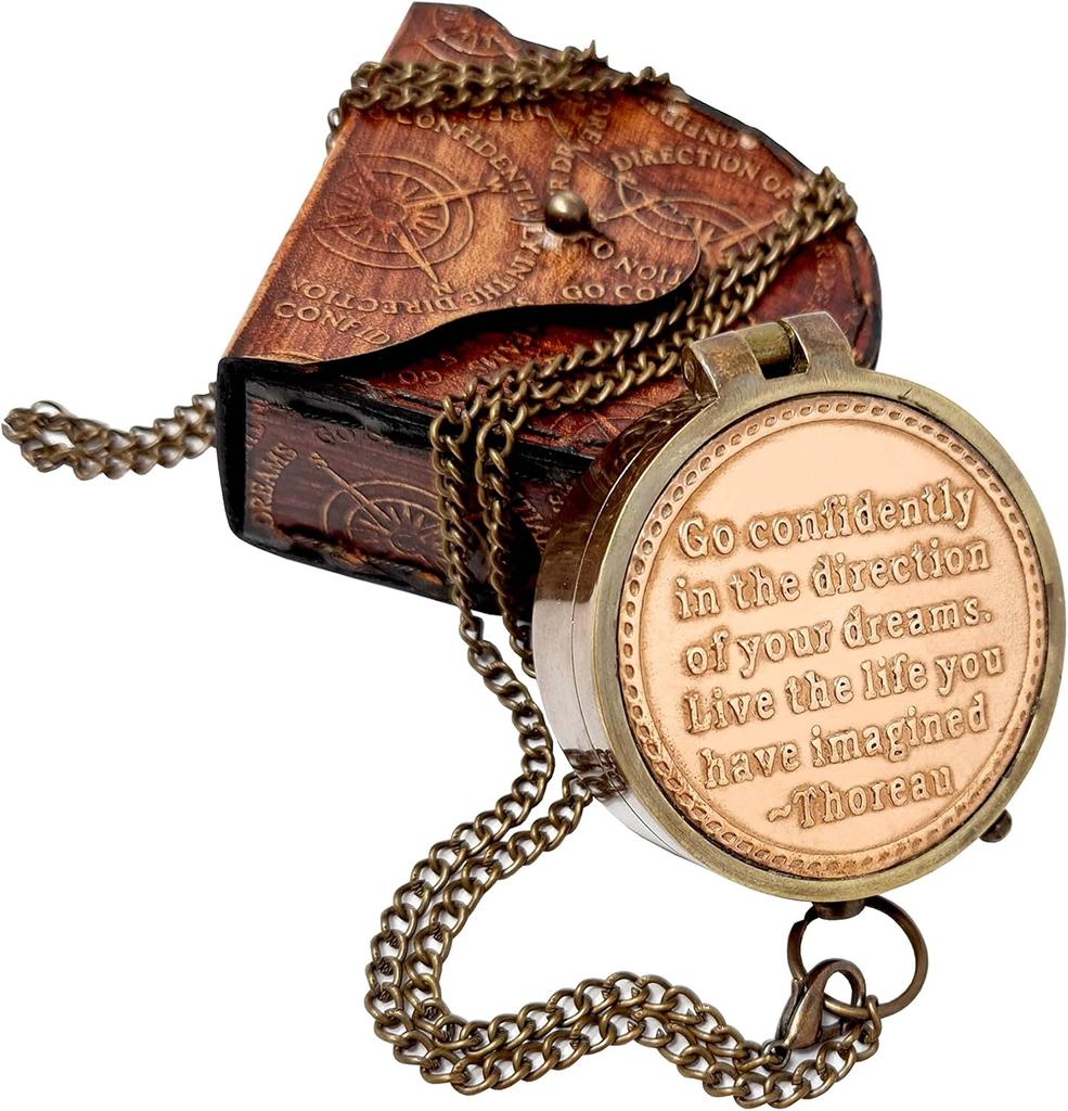 Inspirational Embossing The compass features an embossed quote by Henry David Thoreau, offering both motivation and elegance. The quote reads, "Go confidently in the direction of your dreams. Live the life you have imagined."