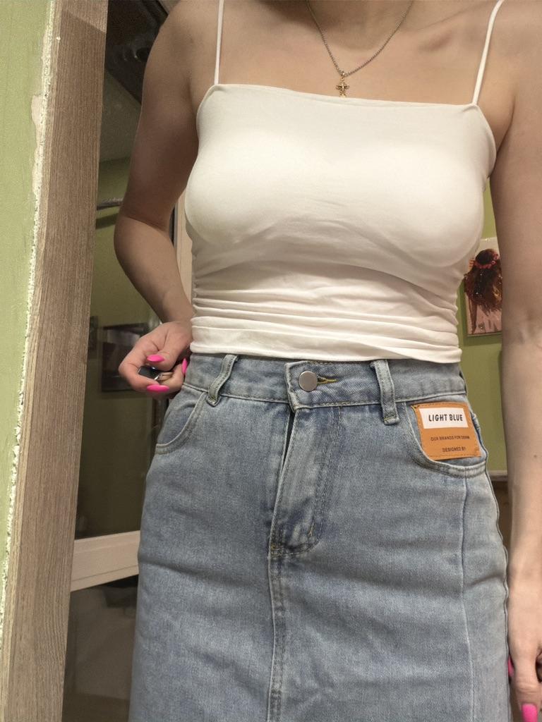 The T-shirt is cool, everything fits, but it’s a pity that the push-up is see-through, since it’s white.