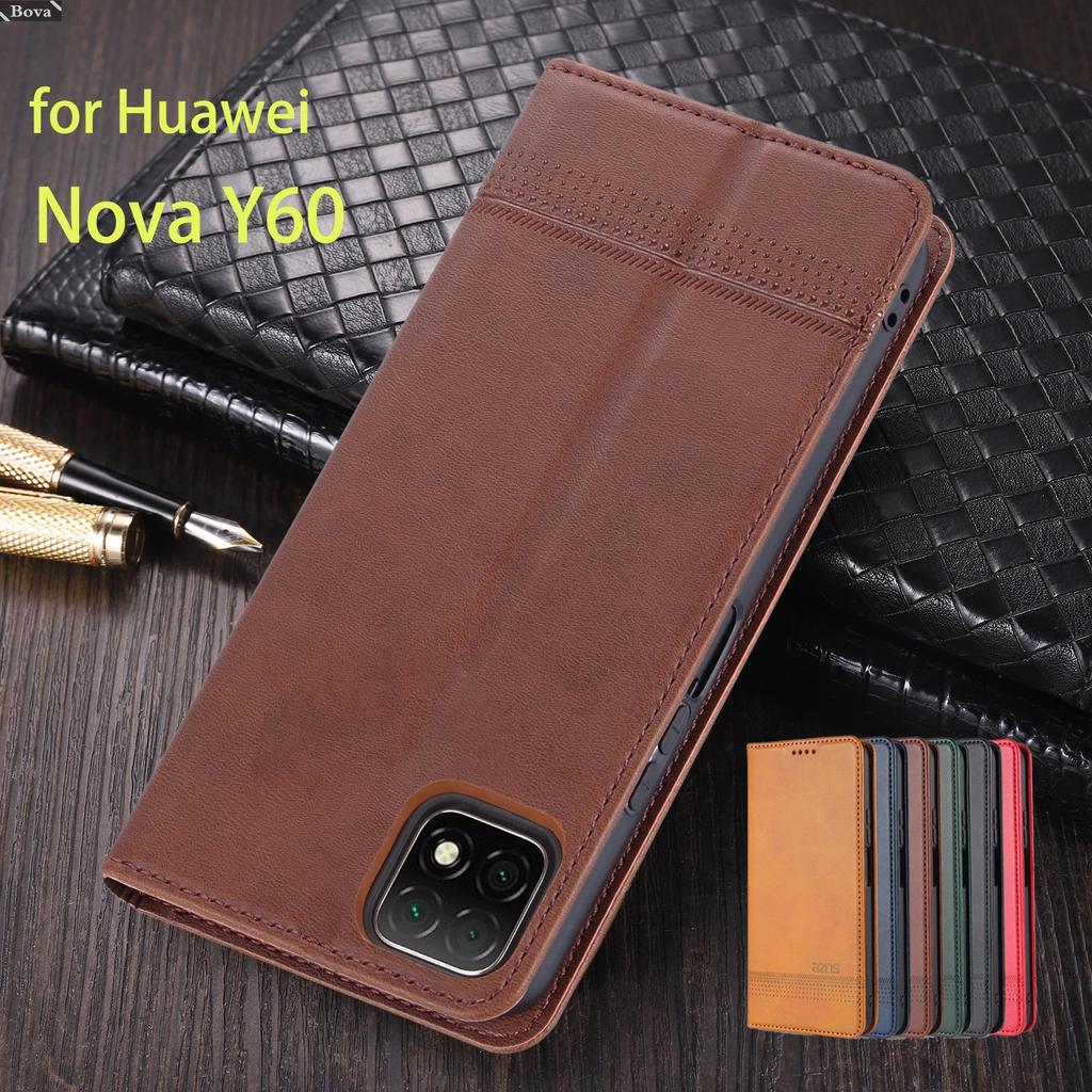 Deluxe Magnetic Adsorption Leather Fitted Phone Case for Huawei Nova Y60 Y 60 Flip Cover Protective Case Capa Fundas Coque