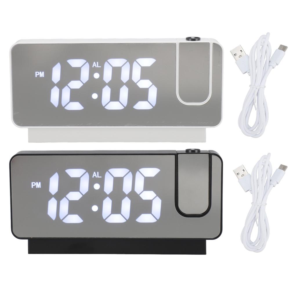 Projection Alarm Clock USB Rechargeable White Light Snooze Function Adjustable Brightness LED Mirror