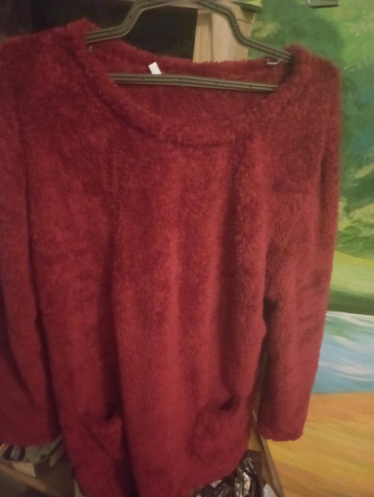 I love velour and plush things, but this dress shocked me! Faded, some indescribable color, huge neckline, extremely long sleeves, unpleasant to the touch, !!!! In short, money down the drain!