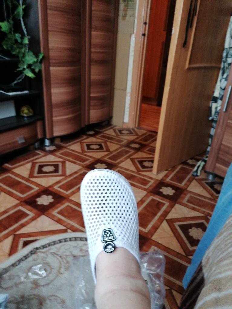 Excellent Crocs: lightweight ..size to size.. There is a smell👃 (but it aired out on the balcony👍😊).. For such money - super for the pool) recommend👍