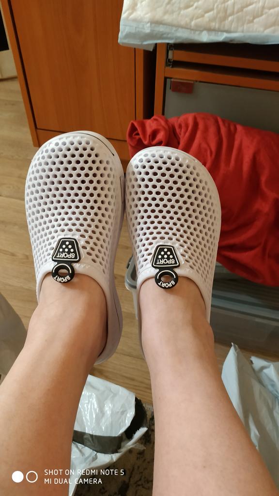 Very nice Crocs, without any creases or damage, I like that they are very comfortable and walking in them is a pleasure. Thank you Joom and the seller for the good packaging!!! I've been wearing them for a week and I'm happy!