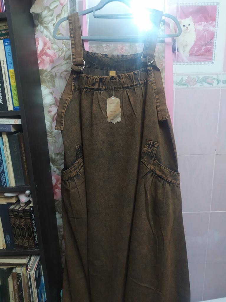 Korean Style Autumn Winter Women Plus Size Midi Sundress Suspenders Brown Blue Green Casual Loose Dress Sleeveless Stylish Baggy Denim Dress