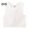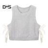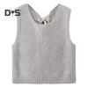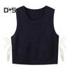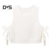 Women Knitted Vest Round Neck Sleeveless Crop Tank Bow Tie Decor Hollow Back Solid Color Short Sweater Vest