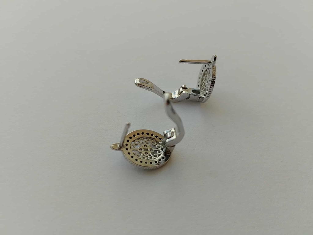 Classic Silver Color Oval Black Zircon Hollow Flower Hoop Earrings for Women Fashion Jewelry Personality Accessories for Girls