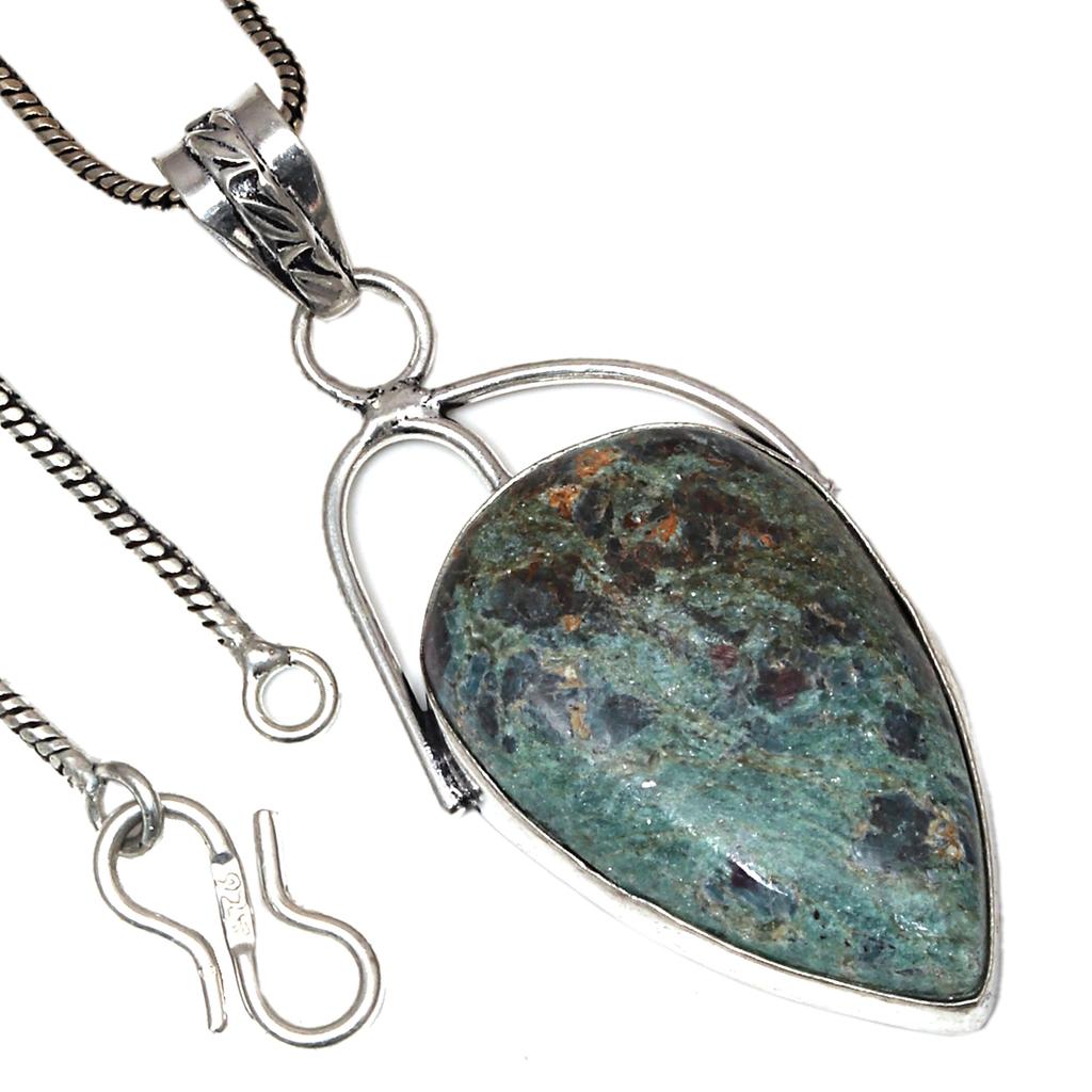 Pendant Fuchsite Cabochon Gemstone Valentine'Day Gifted Silver Jewelry 2.25"