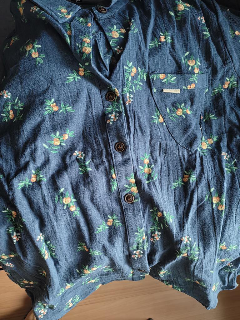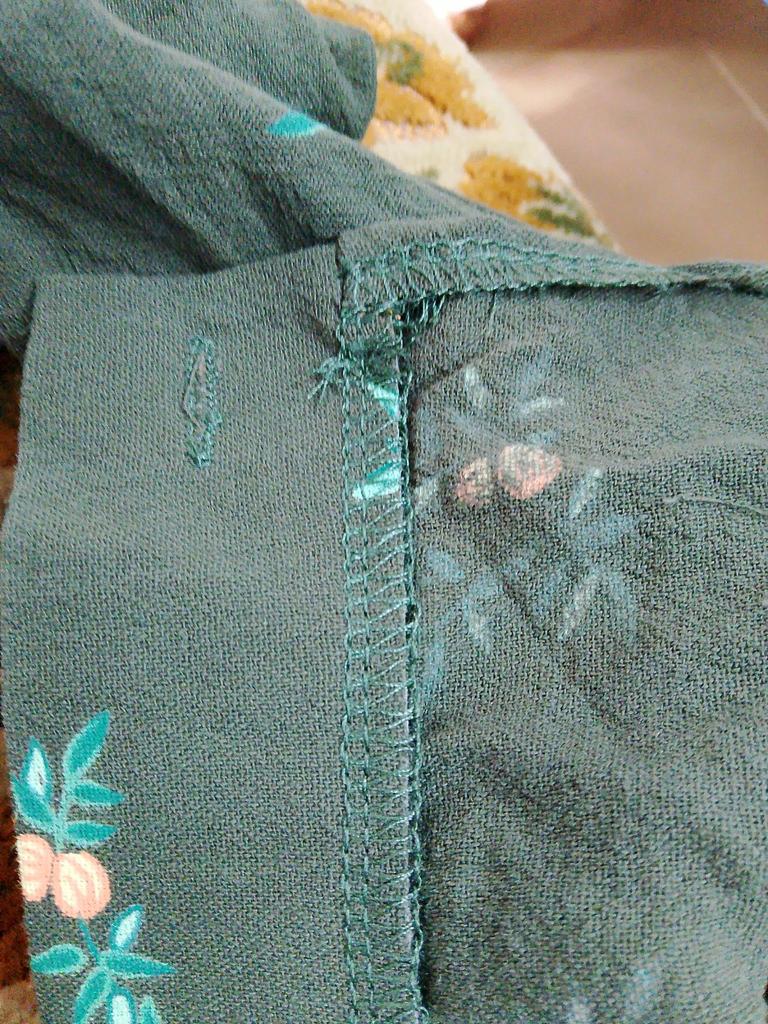 The fabric is not bad, but the smell is terrible. The pattern is similar, but not the same. Ordinary cheap plastic buttons. There is no insert on the collar, there is something on the pocket, but not as in the photo, and the shape of the pocket itself is strange. The seams are not very good in places. In general, don't be fooled by the photo.