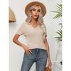 Twisted Lapel Short-sleeved Knit Sweater Women's Stranded Short Tops Summer Cross-border Women's Clothing