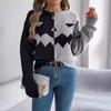 Autumn and Winter Women Halloween Pumpkin Contrast Color Knitted Long Sleeve Loose Sweater