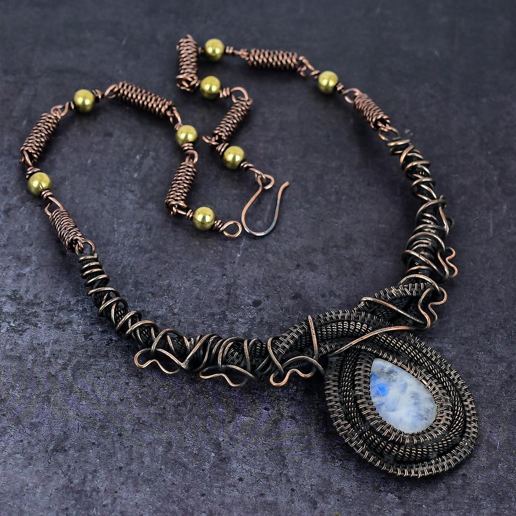 Rainbow Moonstone Gemstone Handmade Copper Wire Wrap Jewelry Necklace 18" B5W33