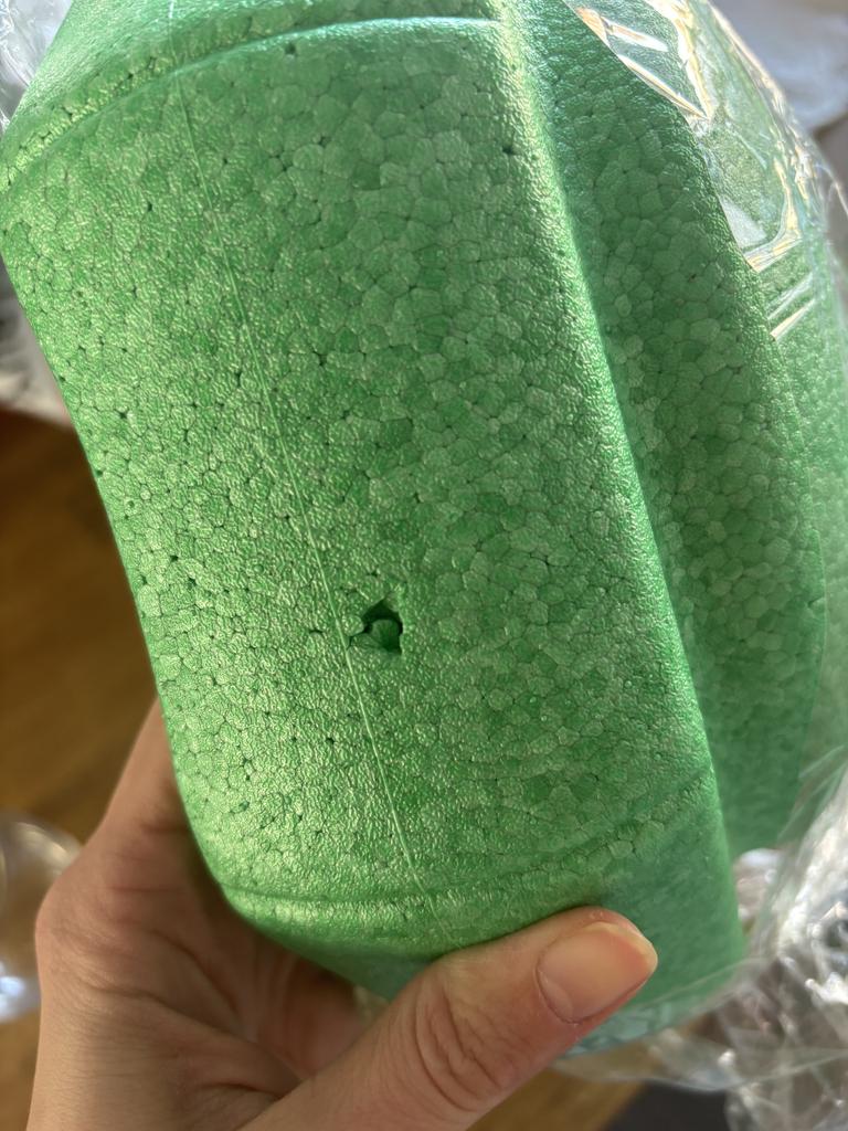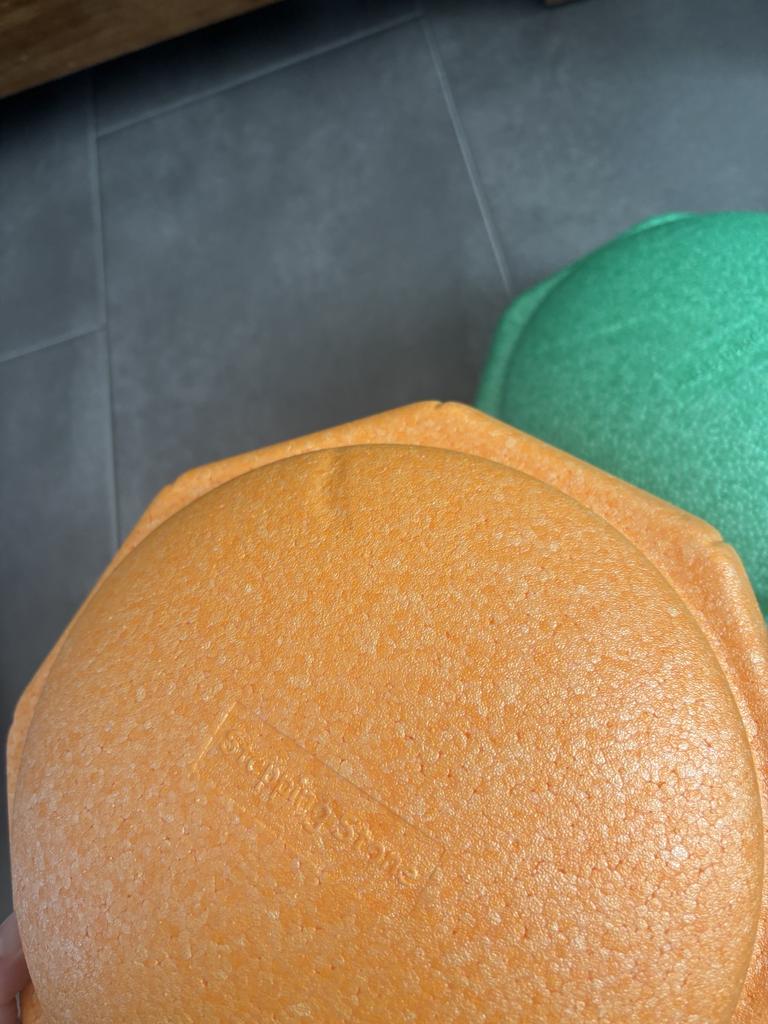 The yellow stepping stone has damage and also black bits/spots in the material. See pictures.