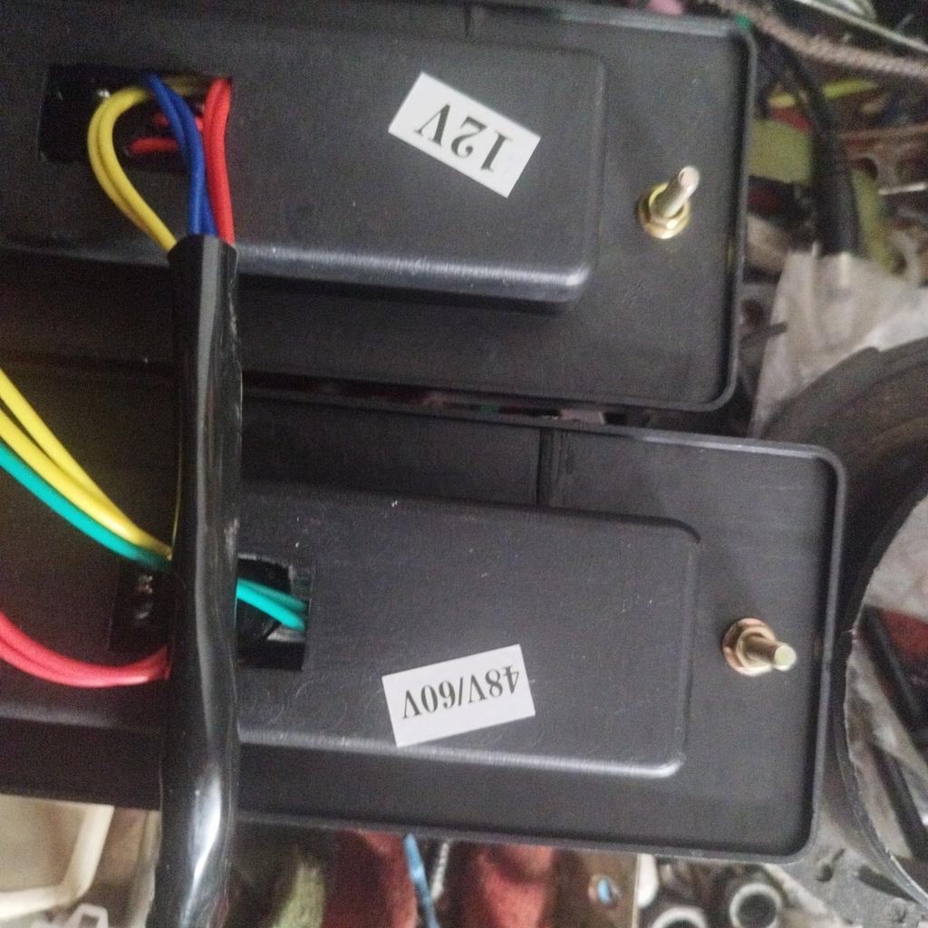 The two are not the same shape, the 48/60 volt one is from the east, the other is not 12v, the 12 volt one does not need a female connector from the east