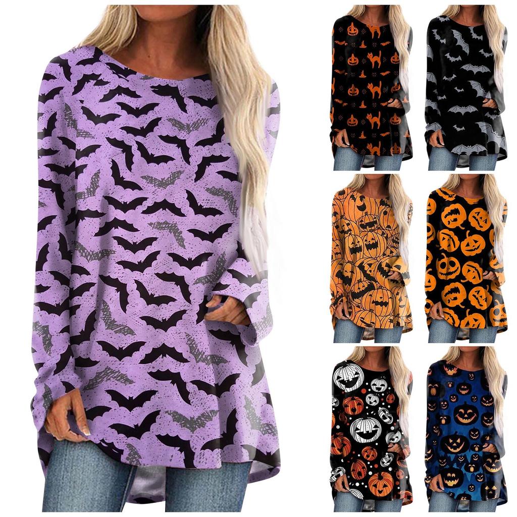 Women's Casual Fashion Halloween Print Long Sleeve Medium Length Top Blouse