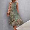 Women's Summer Sleeveless Solid Color Printed Loose Splicing Casual Hanging Neck Beach Dresses