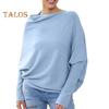 Women Pullover Tops Round Neck Long Sleeve Casual Loose Fit Tops Solid Color Stretchy Casual T-shirt