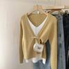 DAFIFY Women's Fashion Casual Fall Winter Solid Color Print Long Sleeve V-Neck Sweaters