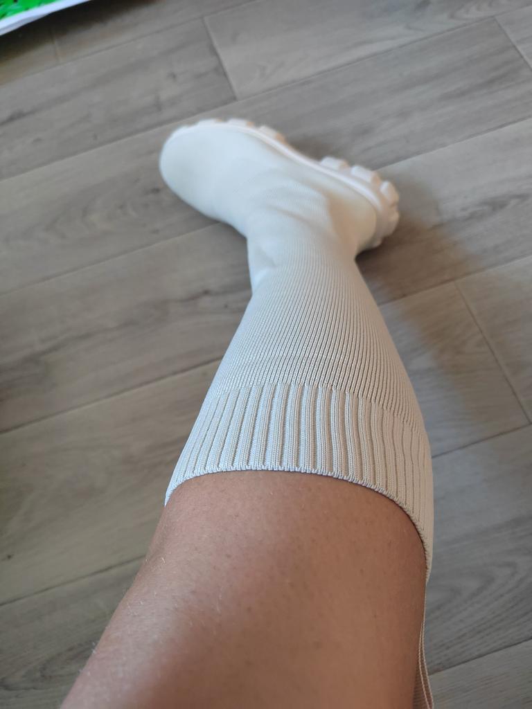Sole is too hard, foot hurting to walk in those and that sock part is it hilding on the leg, too wide. And to return it back IS A headache. All these strange demands, no automated return policy. No more ever using this crappy platform.