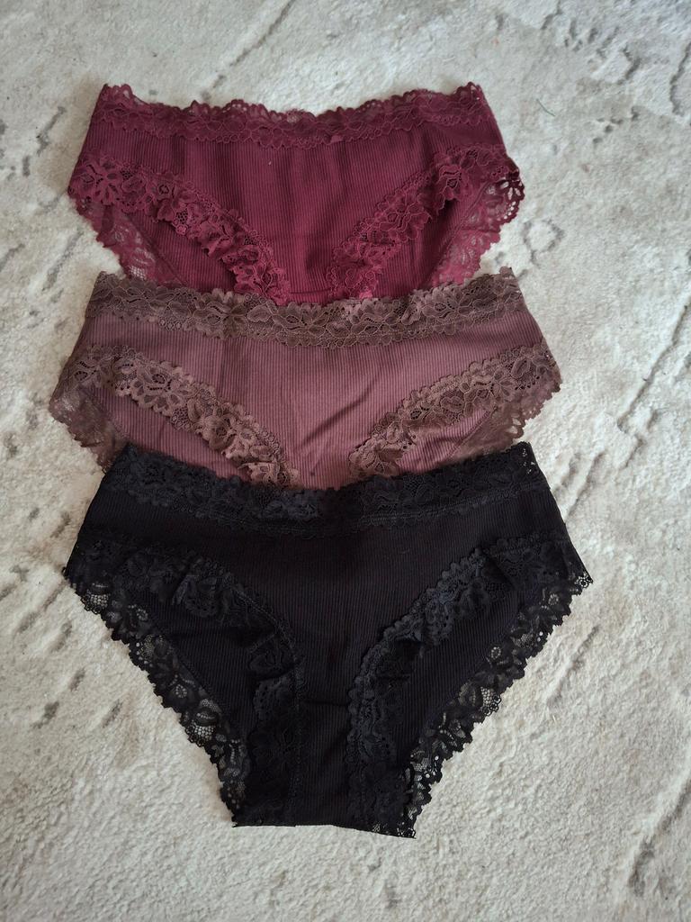 FINETOO 3PCS/Set Cotton Underwear For Women Sexy Lace Ribbed Floral Thongs Female Breathable Solid T-back Bikini S-XL Sexy Lace Panties