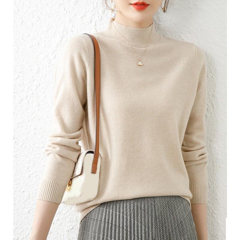 Fashion Women Emi-turtleneck Knitted Sweater Women's Inner Slim-fit Long Sleeve Bottoming Shirt Autumn and Winter Casual Pullover Sweaters 1855