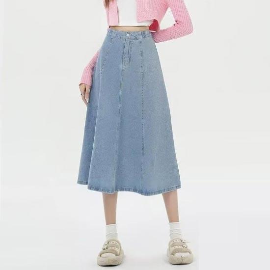 Women‘s Denim Midi Skirt Spring Autumn Street Style High-Waist Slim Skirt Y2k Vintage Casual Clothing Plus Size