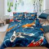 Golden Fish Duvet Cover Set King Size Comforter Cover 3D Print Orange Fishes Lucky for Kids Boys Girls Men Polyester Bedding Set