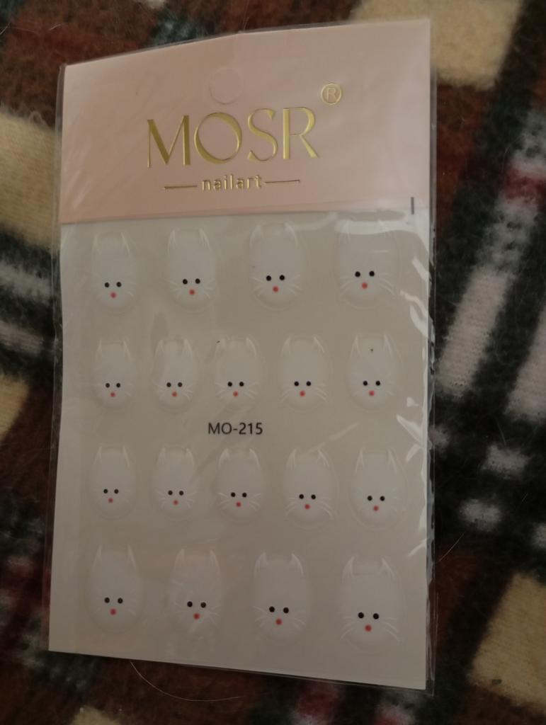 Cute White Cat Nail Stickers Decals 5D Kitten Ink Blooming Flowers Nail Art Decoration Kawaii Cartoon Decals Summer Manicure