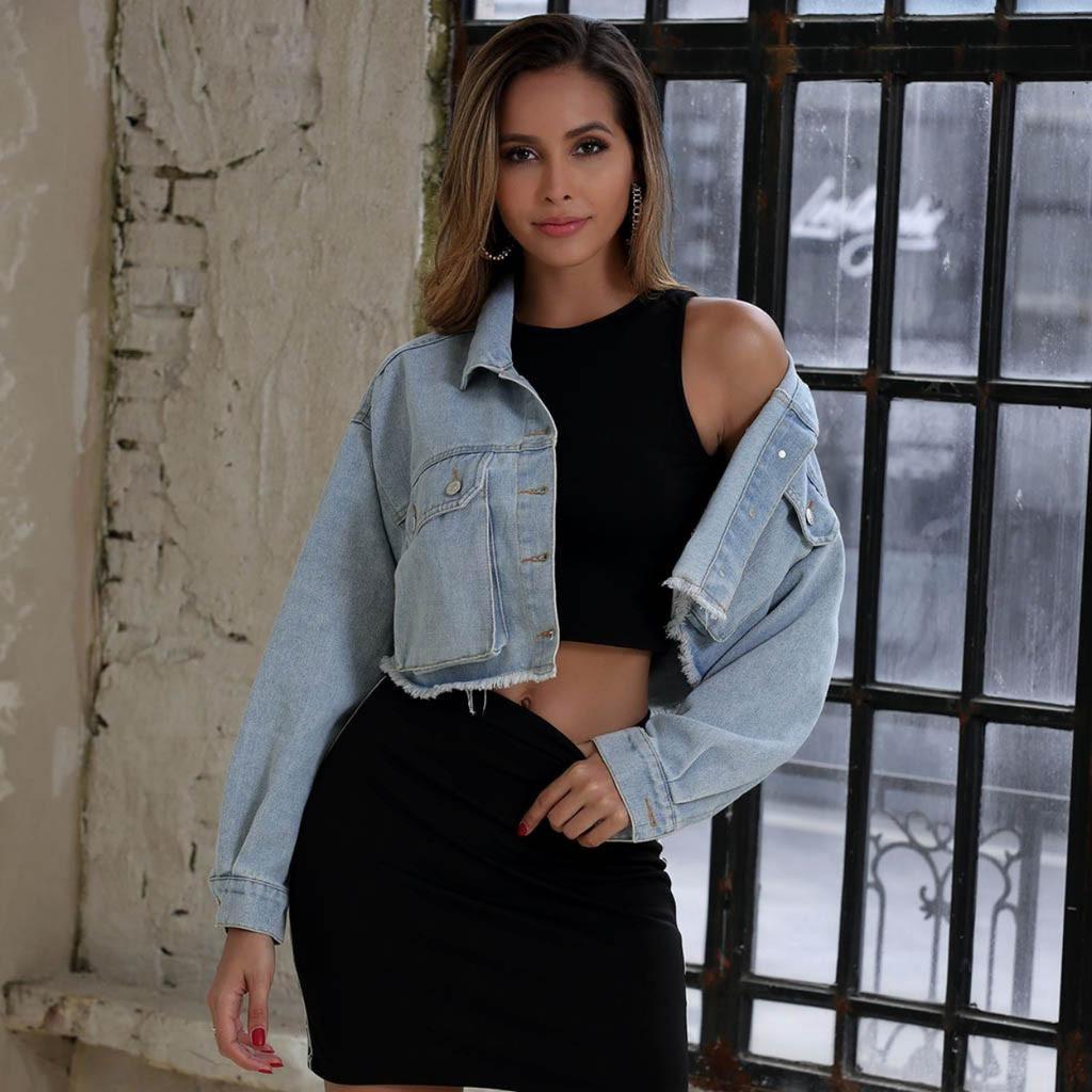 Womens Denim Long Sleeve Button Jacket Casual Coat Outwear