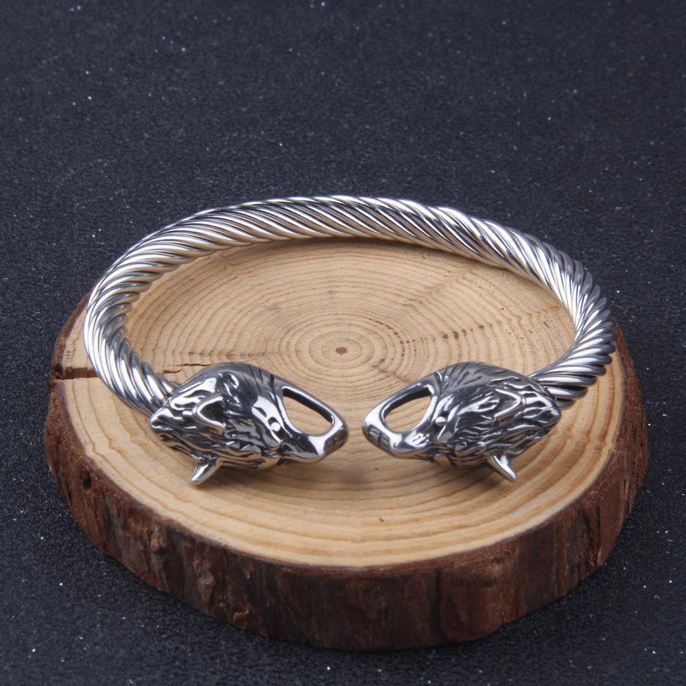 European and American Men's Titanium Steel Bracelet Nordic Viking Wolf Retro Stainless Steel Bracelet Men's Simple Open Bracelet Jewelry Accessories