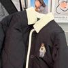 Cute Bear Embroidery Oversized Jackets Fall Winter Clothes Casual Fashion Warm Vintage Coat Tops