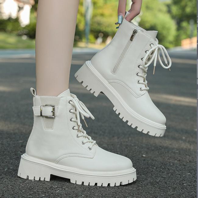 Female British Style Motorcycle Thick Soled Spring and Autumn Thin Single Boots Winter Sweet Cool Short Boots