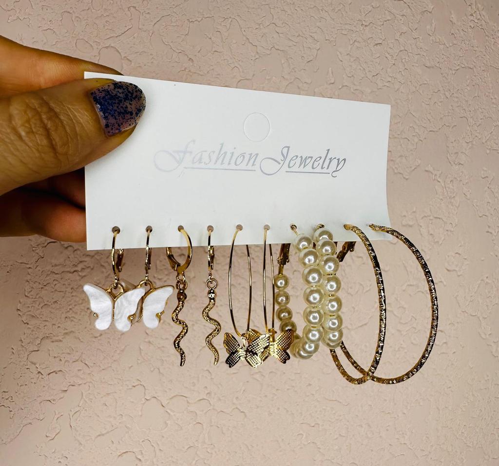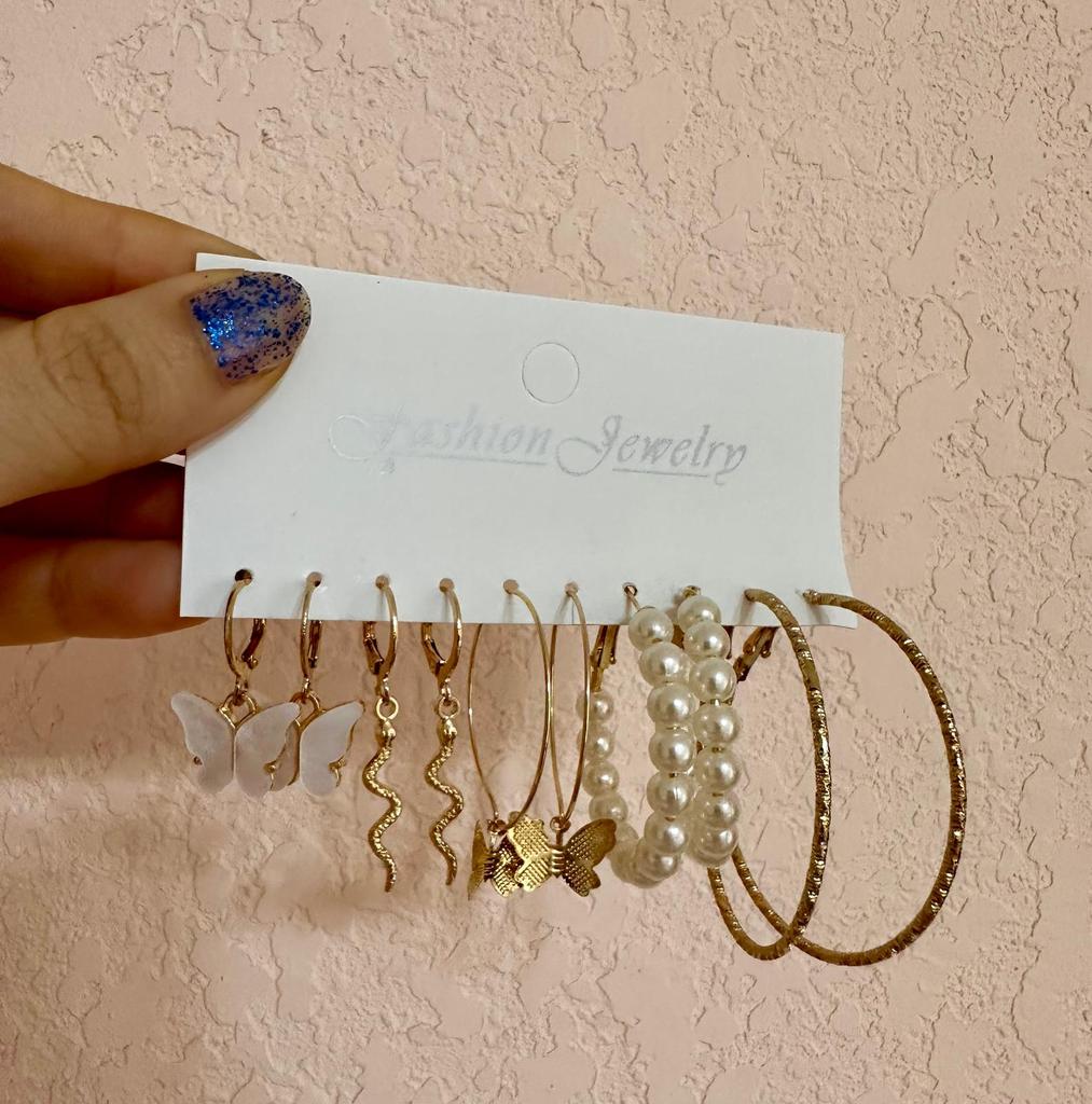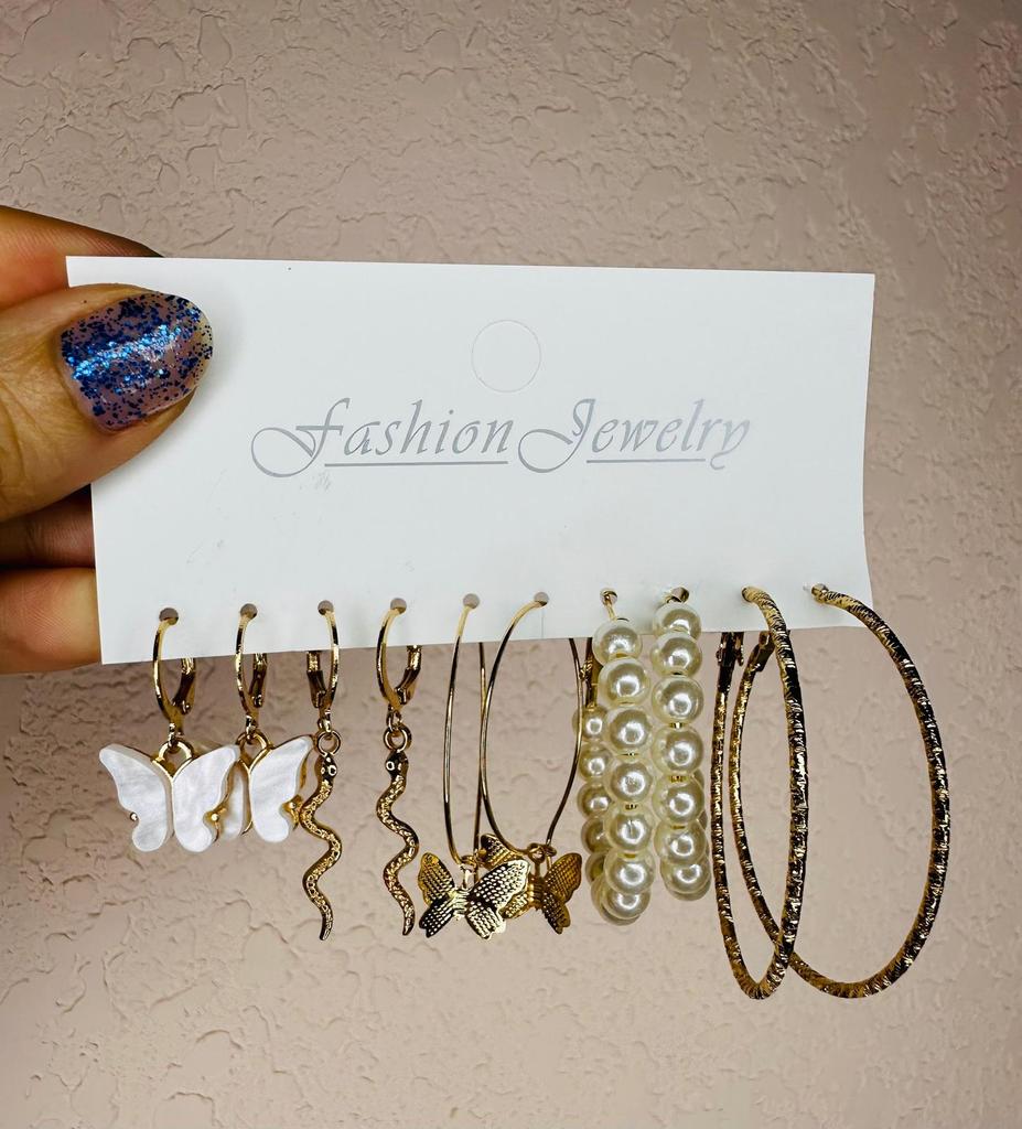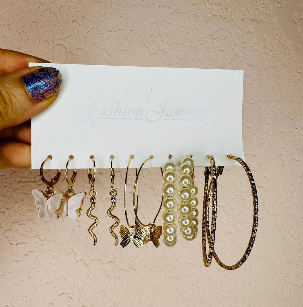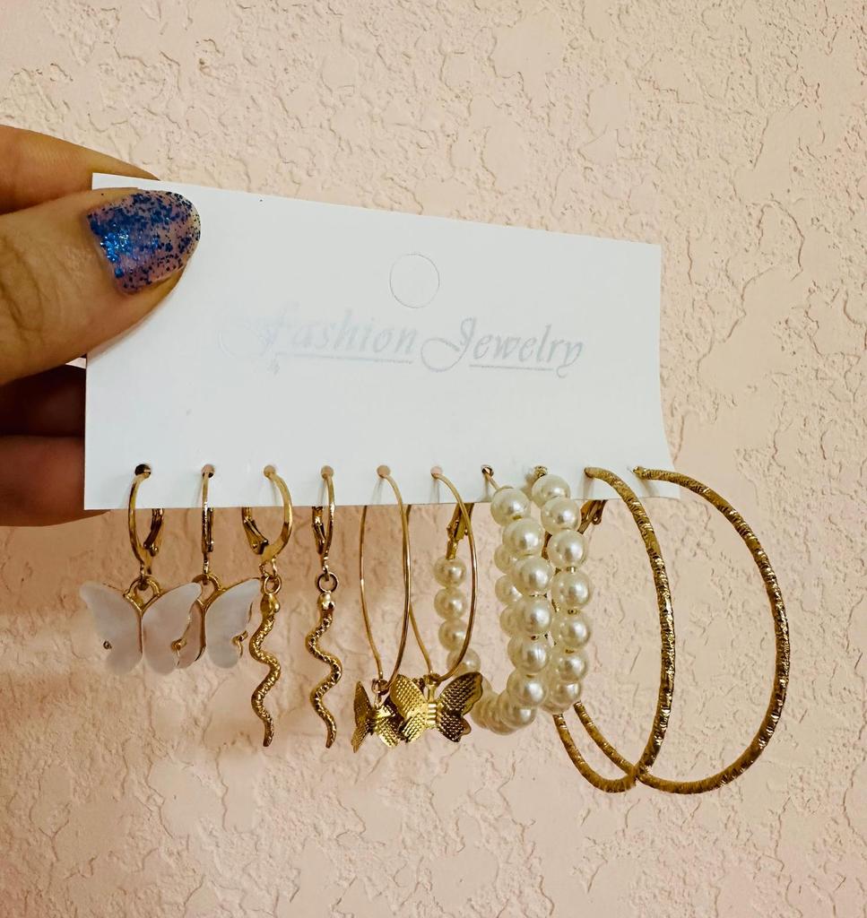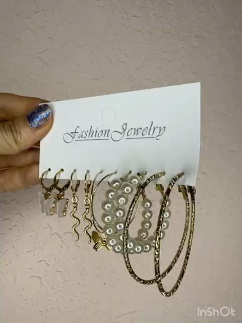 Excellent value earrings in gold finish.5 sets with super cute design and great price.Delivery took 3.5 weeks to Ireland.Happy Shopping!