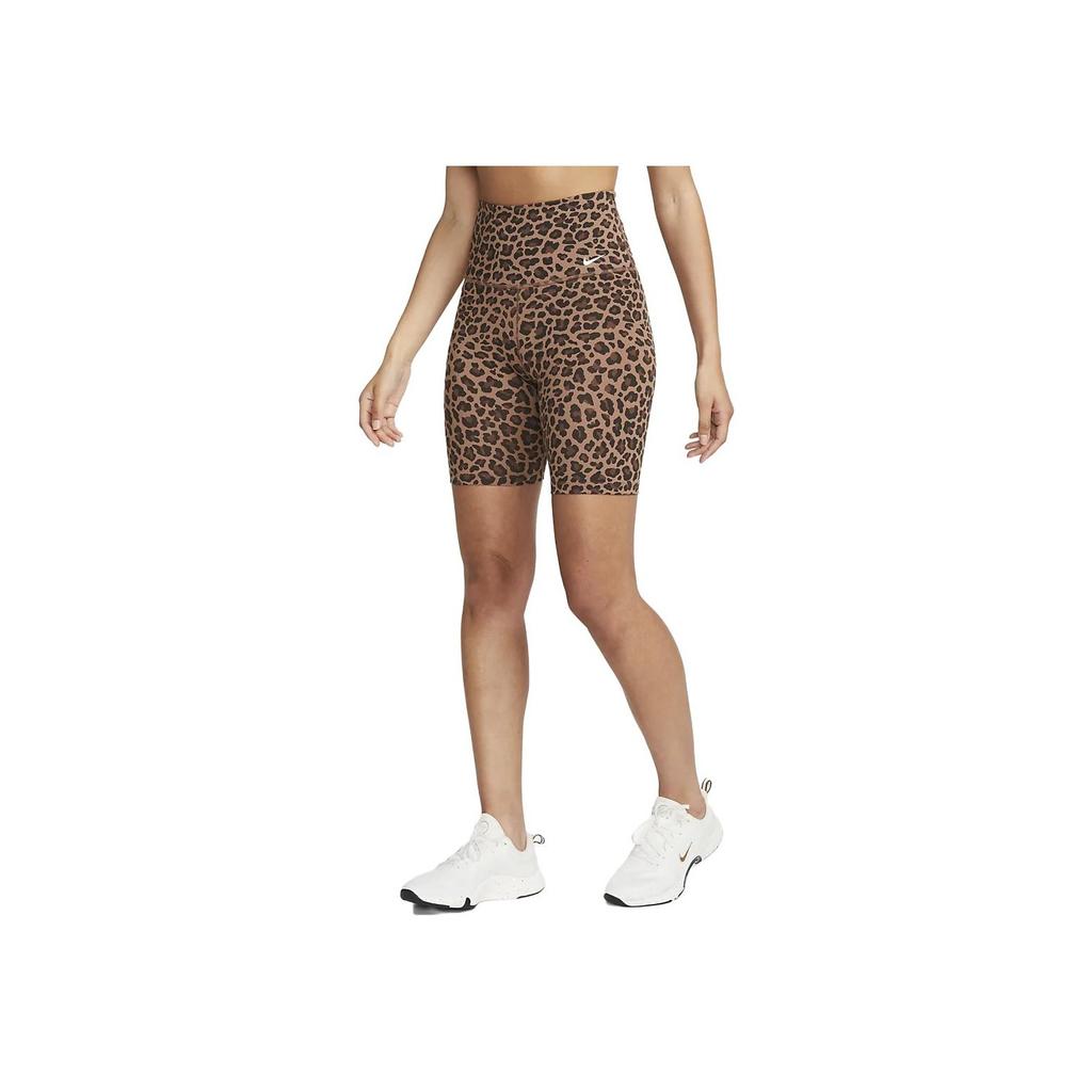 Nike One Leopard Print Straight Leg Workout Shorts Women Shorts Brown DX0122-256