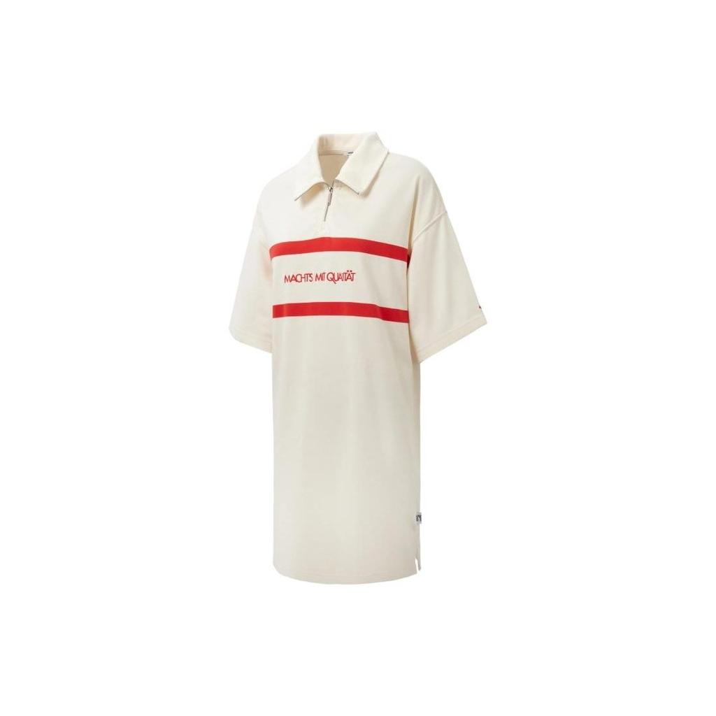 Puma Select Mmq Series Color Block Striped Casual Sports Polo Dress Women Dresses White 536542-65