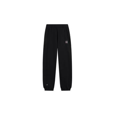 Li Ning Sports Lifestyle Series Solid Color Fleece Thickened Elastic Waist Tapered Knit Sweatpants Women Bottoms Black AKLTC08-1